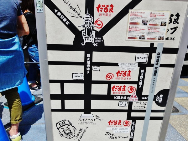 実はジャンジャン店のほかに串かつだるまは新世界エリアに3店舗もあります。他のお店はどうかなと妻と子供を並ばせて偵察に行って来ました。