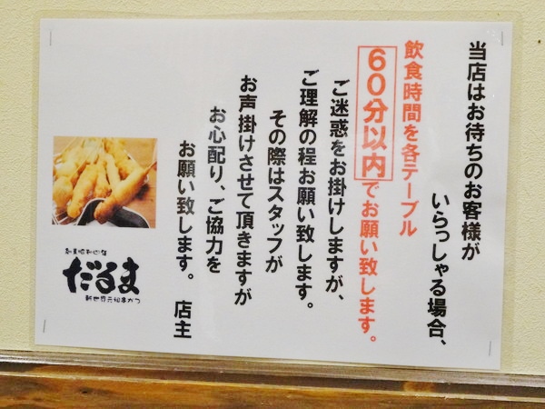 飲んだら、けっこう長居するよなぁ~と感じていたのですが、60分の時間制限とは!