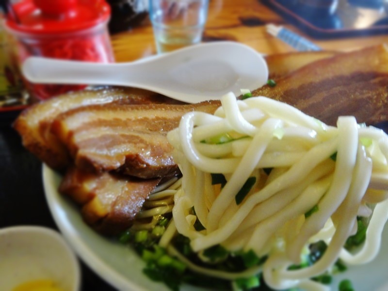 今回わたしが行った時も開店前から並んでるお客さんが自分を含め5~6組いました。そして私を含めほとんどの方のお目当てが「三枚肉そば」だったんです。
