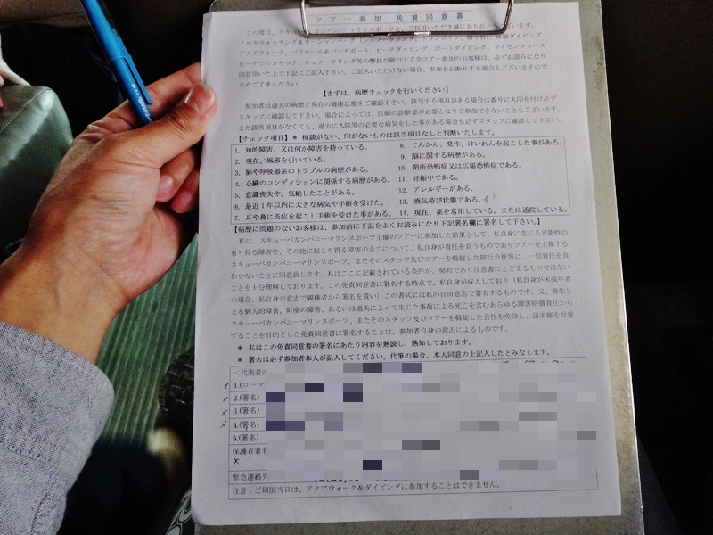 こちらは一読して、家族全員のサインを行います。記入はバスの中なので、停車中にサッと書いてしまいましょう。