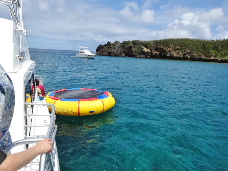 ここでは、それぞれシュノーケリングなどを楽しむことができます。わたし達はまず、子供とトランポリンで遊んでシュノーケリングへ!