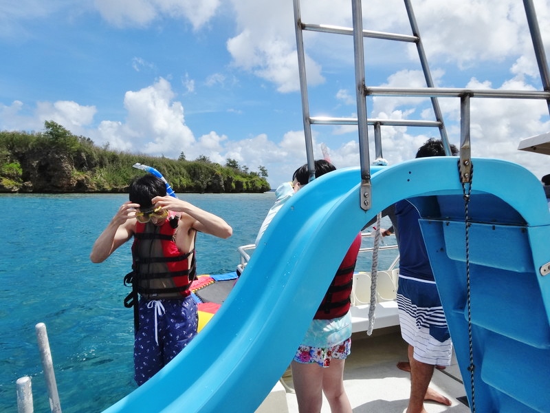 - イルカウォッチングのほかにシュノーケリングや滑り台、トランポリンで遊べる