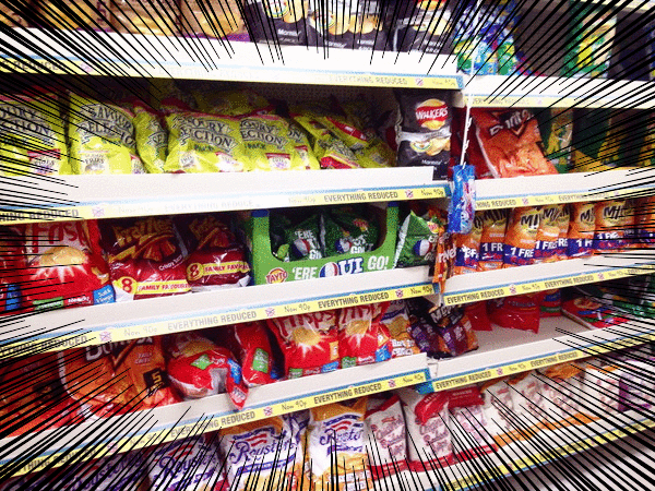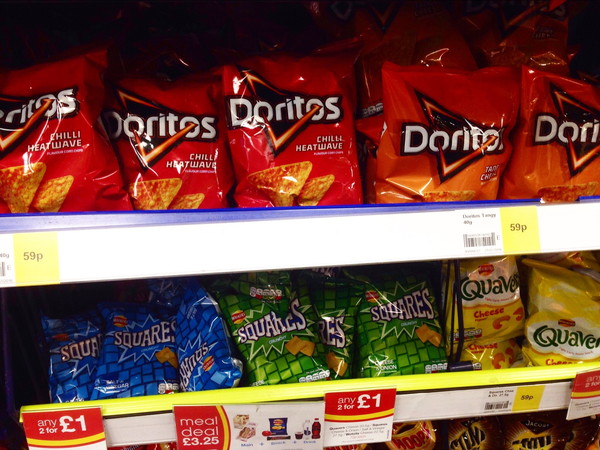 スナック菓子も色んな種類があります。ポテトチップス、タコスなど。
