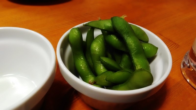 突き出しの枝豆。唐揚げが来るまでこちらでゆっくり飲んでおきましょう。