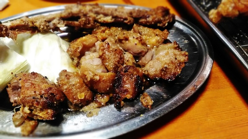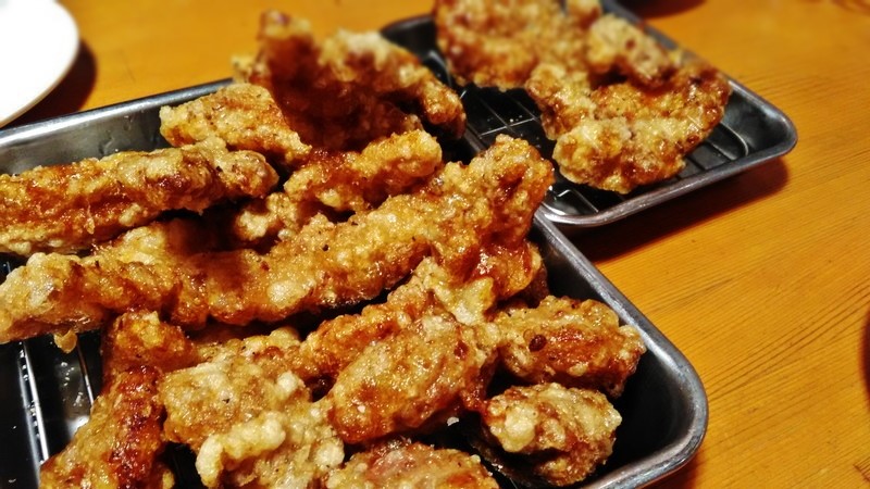 ほどなくして唐揚げが提供されます。すなずり、鶏トロをチョイ飲みセットとしてオーダー。その他にも3種MIXで頼んだので、一気に運ばれてきました。