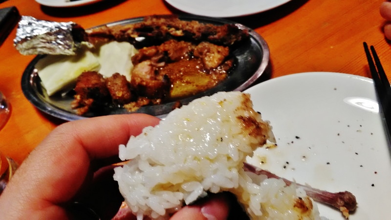 な~んだおにぎりかよ!と思われたかもしれません。でもね、このおにぎり皿に残ったおや鳥の油をつけながらいただくと最高に美味なんです。