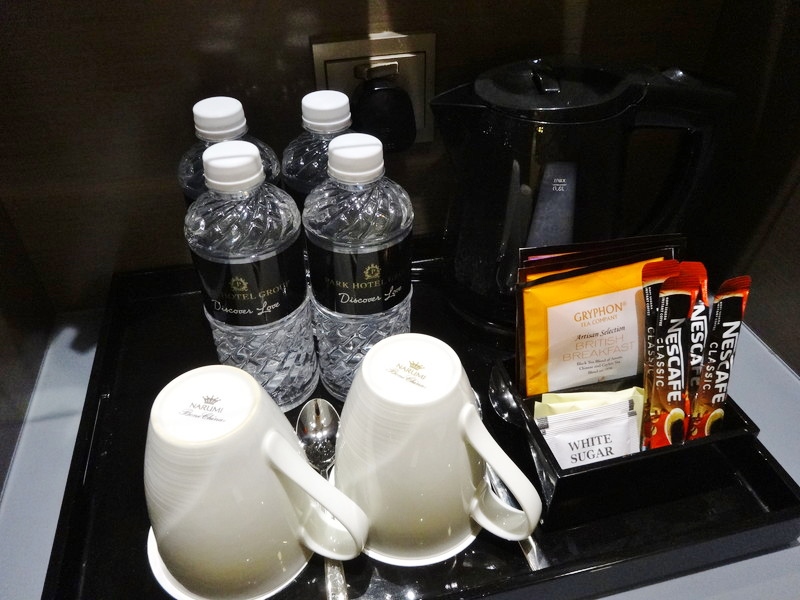 コーヒーや水も置いてありました。こちらはルームサービスではなく、無料のものです。特に嬉しいのがペットボトルの水。
