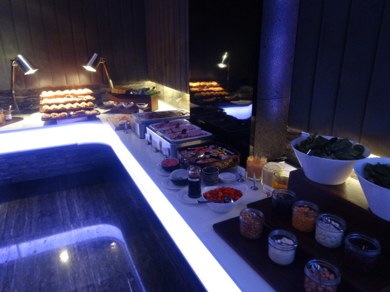 朝食会場に入ると座る場所に案内されます。会場内は少し照明を落とし気味でガッツリ明るくはないです。