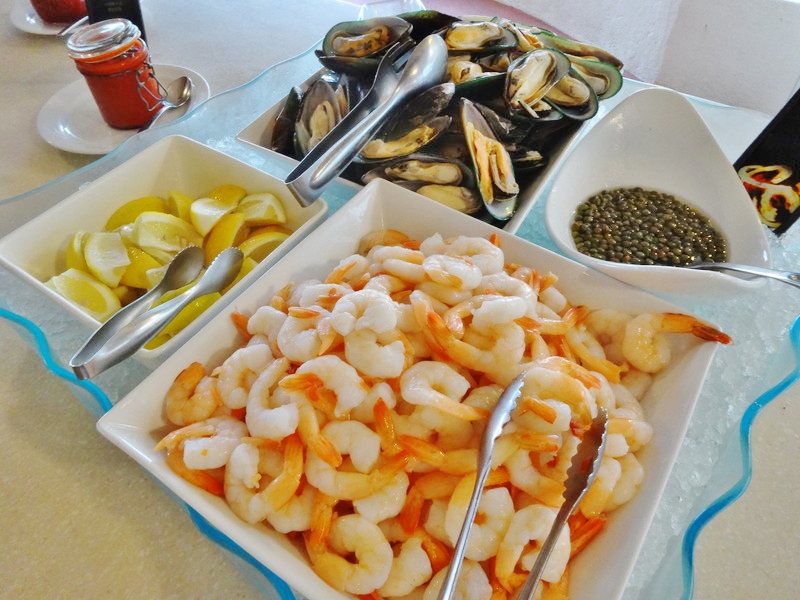 ヒルトンのBBQにはシーフード系も充実しています。最初に乗せたロブスターもそうですが、海老や貝もゴロゴロあります。海老はプリップリでレモンで頂くと最高でしたよ!
