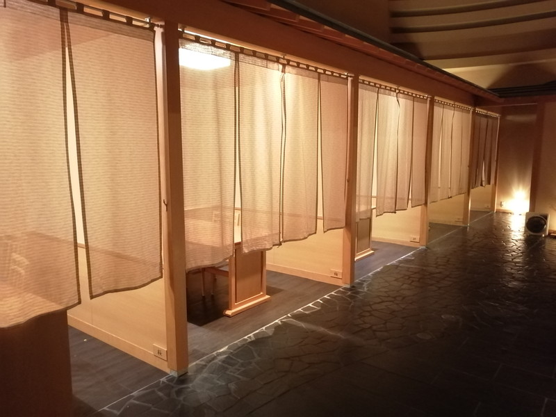 一つのグループ毎に仕切られていて、暖簾で軽く目隠ししています。静かに過ごしたいお客さんが多いためか周りの話し声も小さく、全く気になりませんでしたよ。