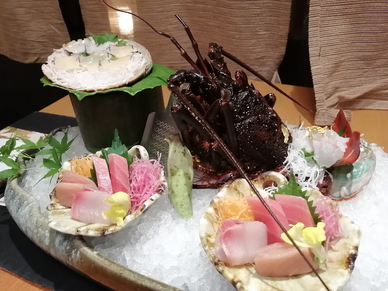 です。伊勢海老は姿までついて迫力満点ですね。それに地元の「山葵」まですりおろしで付いてきて、テンションがあがります。けっこうな山葵好きでして、これだけでご飯食べれるくらいです。