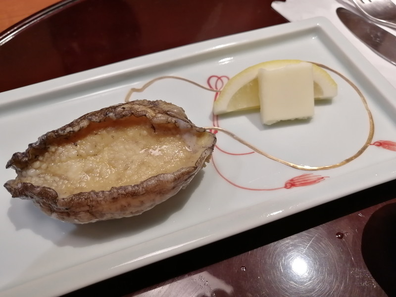 焼き終わったあとはお皿に移してくれてバターと一緒にいただきます。このバターも甘みが強く、鮑とベストマッチでしたね。