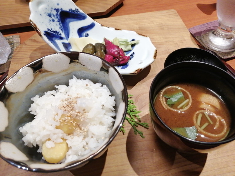 デザート前に出てきた食事の最後は季節の「栗ご飯」です。薄い味付けでなんとも上品なこと。