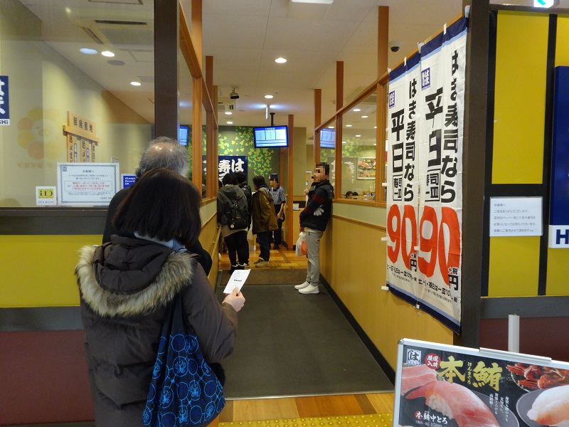 そんな時はちょっと移動して「はま寿司」に行きましょう。徒歩ではちょっと厳しい場所ですが、車なら楽々です。人も少なくおすすめですよ。WEB予約もできて待ち時間も少ないです。