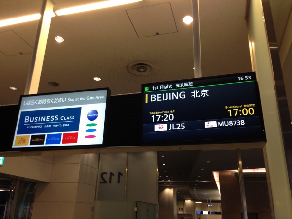 自宅からすぐ、羽田。そして搭乗して4時間あまりで北京到着です。ほとんど国内移動と変わらない感覚。近いですよ、北京は。