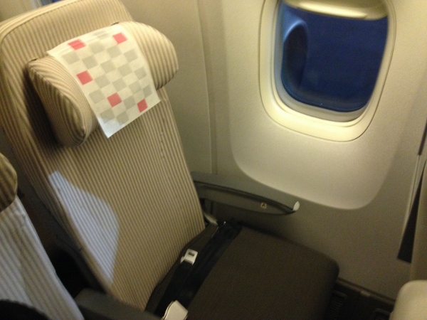 座席間隔はこんな感じです。狭くはないですが、広くもなし。