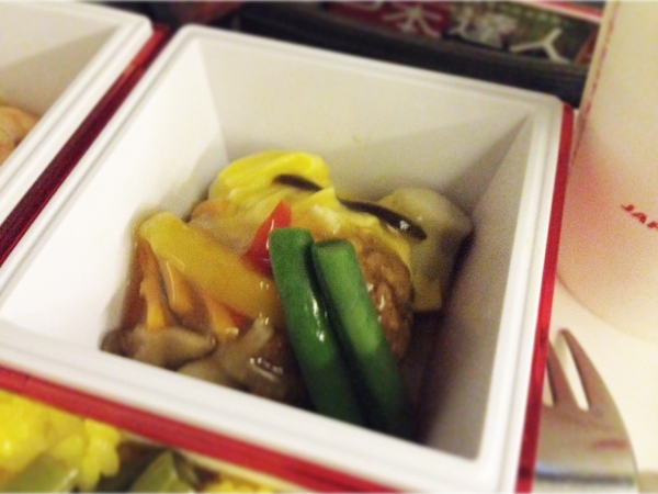 離陸後30分ほどでしょうか。機内食とドリンクが配られます。