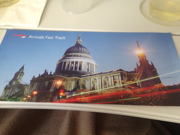 着陸直前にCAさんからいただいた入国審査のファストトラックカード。