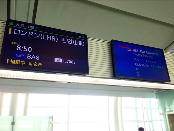 搭乗したのは、日本時間午前8:50発の便名BA8。