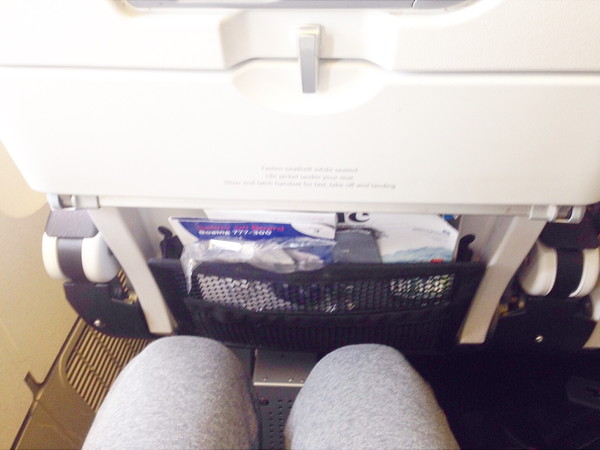フライト中もPCで作業するためにバッグを下ろしたのですが、それでも可動域はありました。