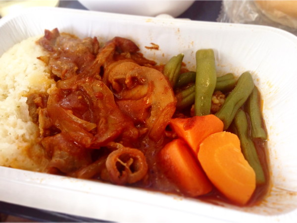 CAさんによると、これは朝食とのこと。時間的にも日本時間で言えば午前11時ぐらいなのでブランチといったところでしょうか。