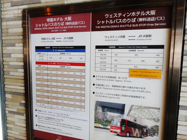 帝国ホテル大阪へのアクセスは大阪駅から15分間隔(土日祝は10分間隔)で運行している無料のシャトルバスがおすすめです。今回の2泊滞在したのですが、4~5回は利用させてもらいましたね。