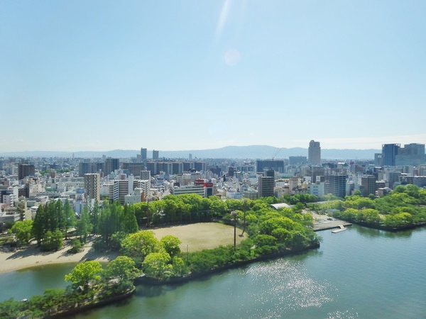 これが帝国ホテル大阪の14階・川側からの眺望です。大阪東部の街並みが見渡せます。