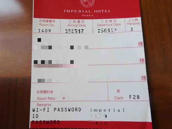 Wi-Fiはもちろん飛んでいます。チェック印字にルームカードを渡されますので、そこにログインIDとパスワードが記載されています。