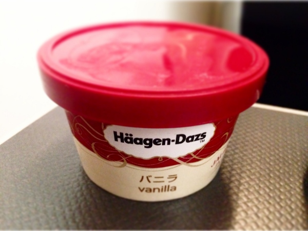 少し時間を置いて配られたハーゲンダッツです。国内線ではJAL・ANA問わずよく配られますね。