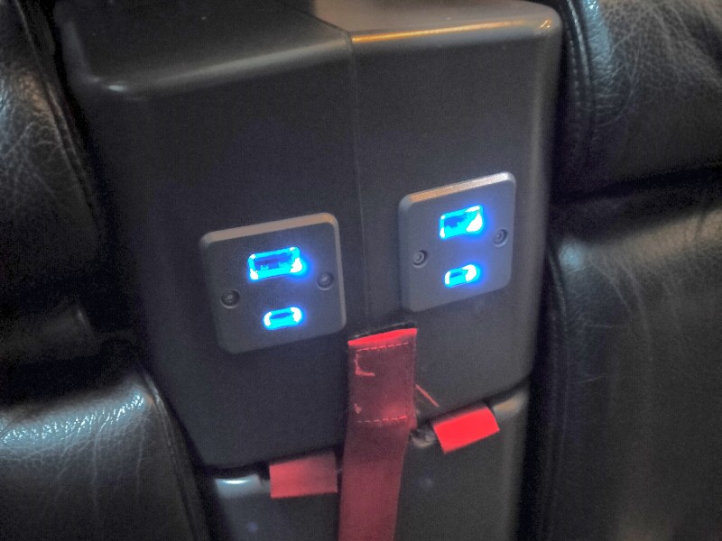 この2ポートが、アームレスト(肘掛け)の前方部分に一体化したユニットとして埋め込まれています。