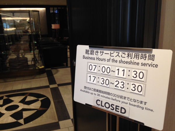 靴磨きも朝夕だけ。情報によるとピカピカに仕上がるそうです。