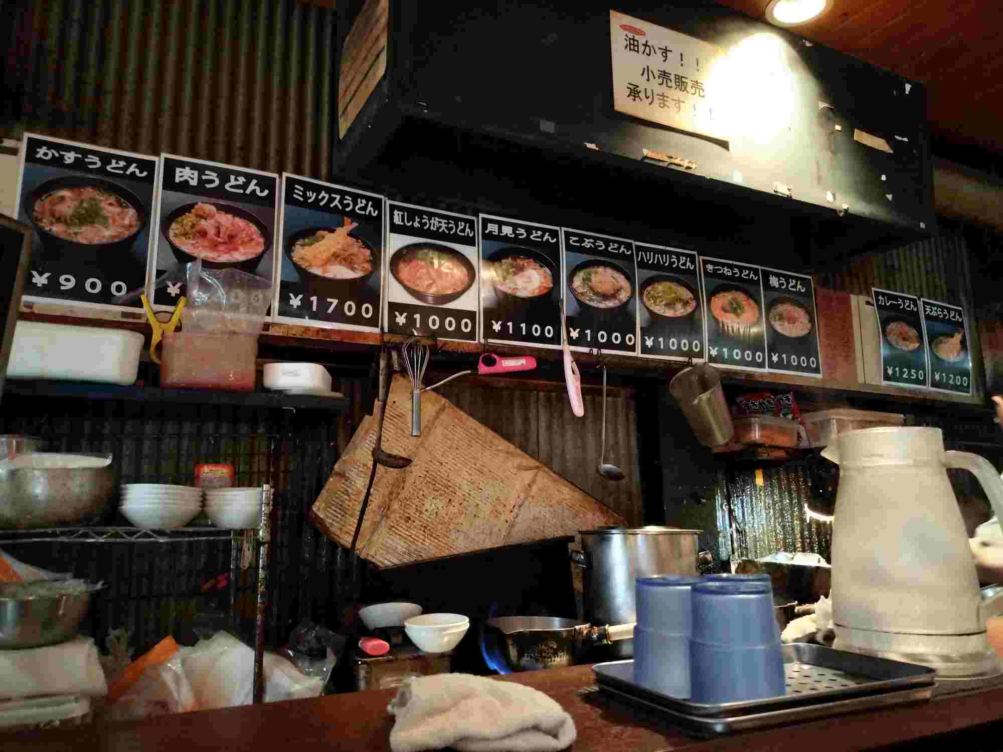 東京や他の都市では、かすうどんを出している店はほとんどありません。