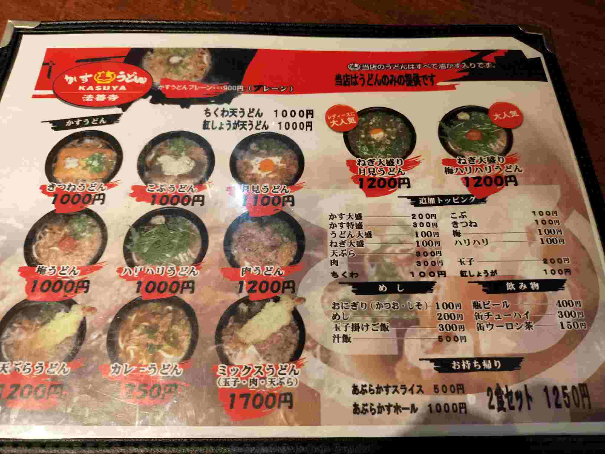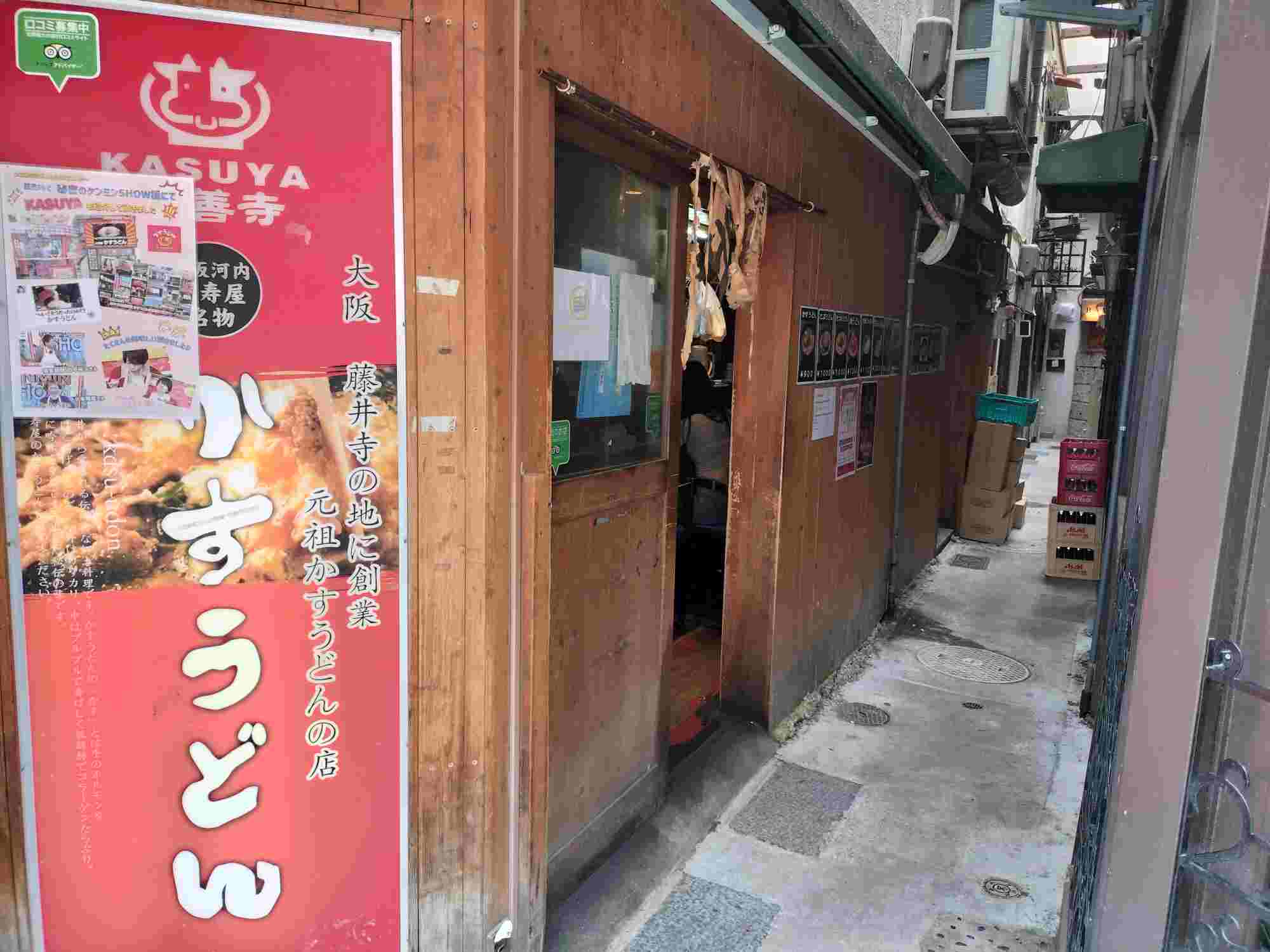「藤井寺の地に創業した元祖かすうどんの店」というキャッチフレーズが入り口に掲げられていて、それだけでもう期待値が上がります。