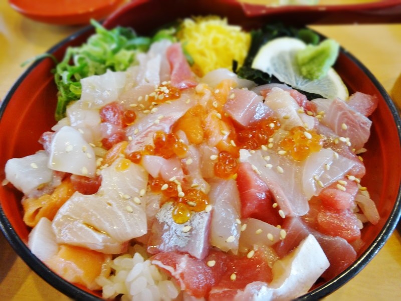 どうです、この種類な海鮮丼。ネタの端の方を利用した感じですが、クオリティは高いです。むしろこれで十分すぎますよね!?これ一杯で満足度はすこぶる高いです!