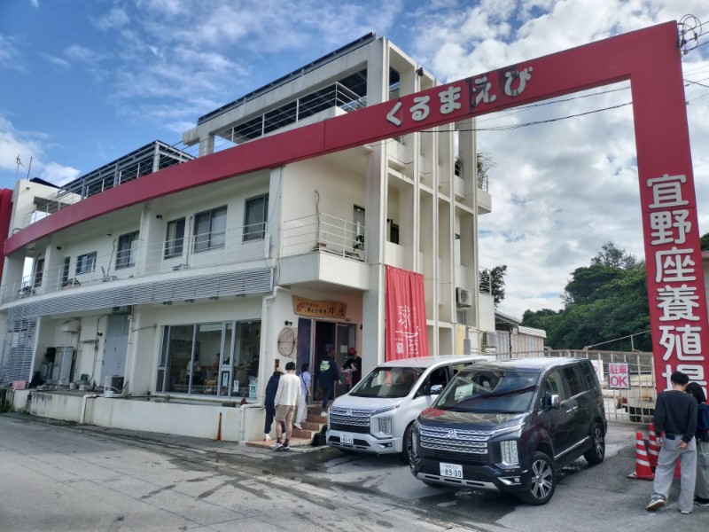 店名だけでなく「宜野座養殖場」の文字も見えるため、「養殖=新鮮な車えびが食べられる」期待が高まります。観光地の中心部から少し離れている分、わざわざ行く価値のある“ご褒美ランチ”として選ばれている印象です。