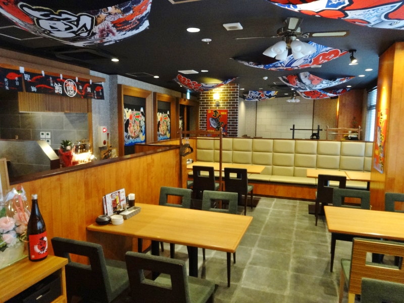 店内は大漁旗が天井から吊されてあったりと基本的ににぎやかな賑やかな店内の造りになっています。