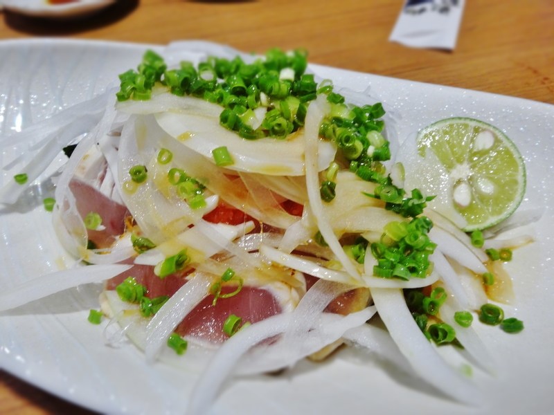 さっぱりしたまぐろのタタキです。玉ねぎとの相性も抜群ですね。