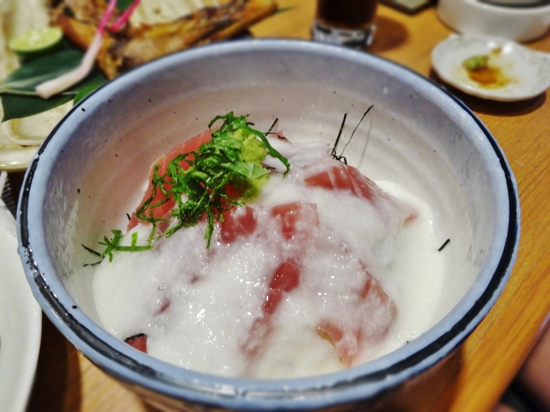 まぐろにトロロが乗った確実に旨い一品です。