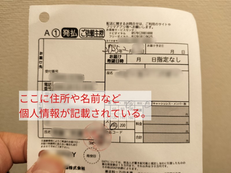つまり、購入者が荷物を受け取る際、出品者の氏名や住所が書かれていることはありません。