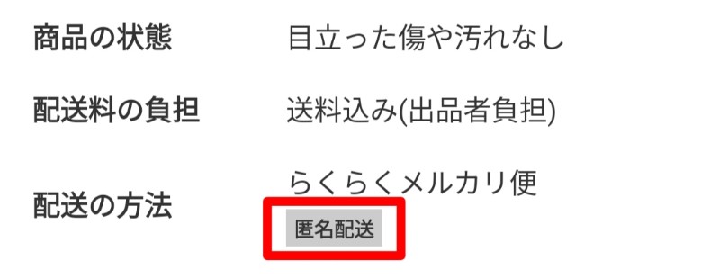 - 匿名配送の確認方法:「らくらくメルカリ便」の下に「匿名配送」のグレー表示があるかチェック
