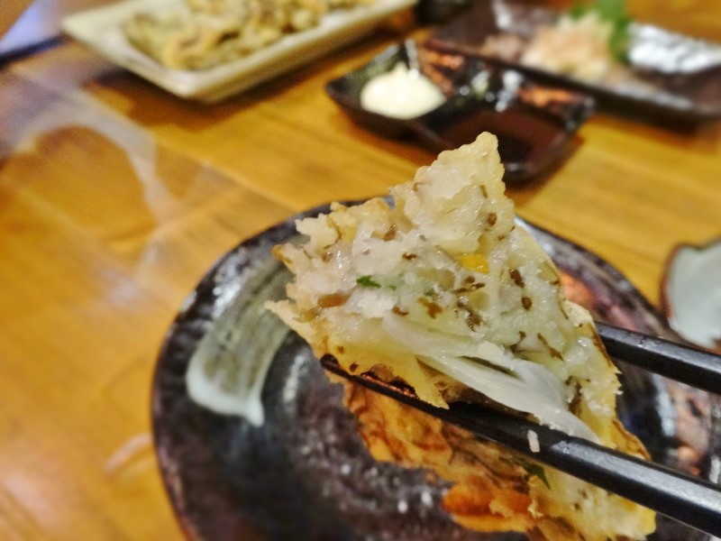 これも最高!もずくの天ぷらです。沖縄が天ぷら有名なのはしっていました。厚みがあってボリューム満天です。
