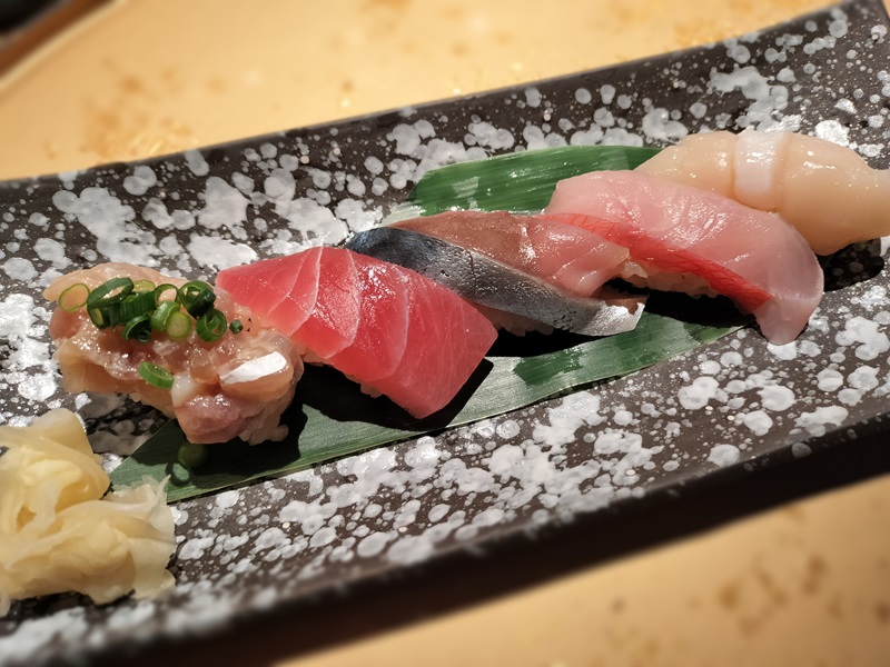 お目当ての握りです。“なめろう”と金目鯛が絶品でしたよ。