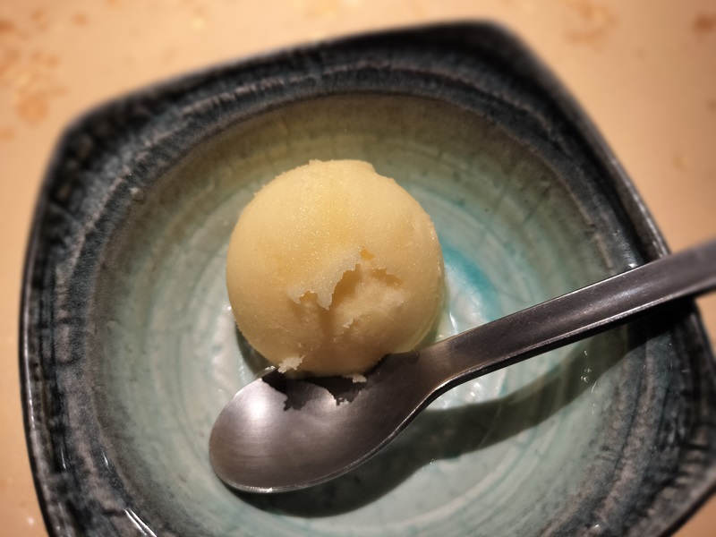 〆はゆずアイスで会席料理の余韻を楽しみます。さわやかなゆずの香りが落ち着きます。