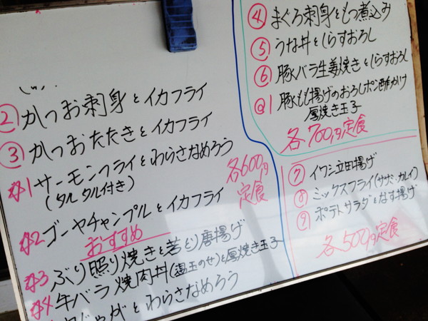 入り口付近のホワイトボードに記載されたメニューです。