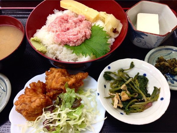 ネギトロと唐揚げ定食