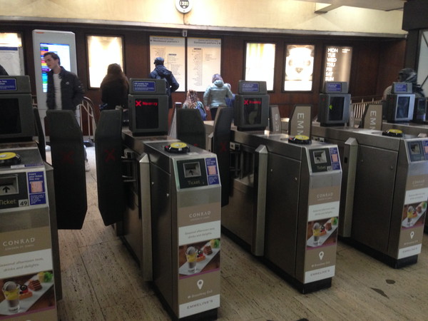 SuicaやPASMOと同じように「オイスターカード」でタッチするだけ。