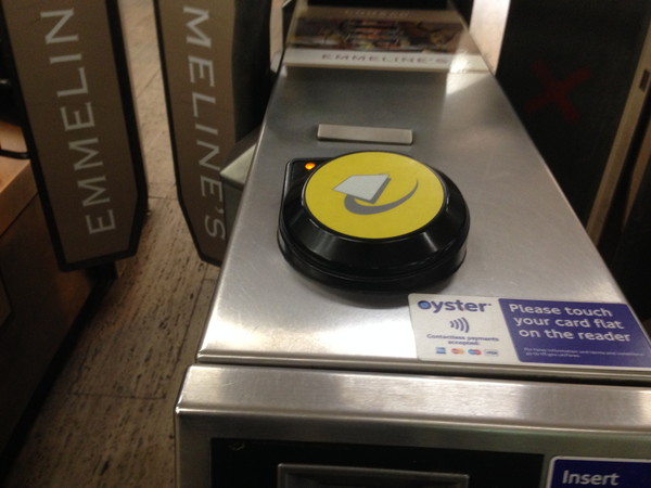 改札や乗り場には、こんな感じでオイスターカードをタッチする“黄色い端末”があります。
