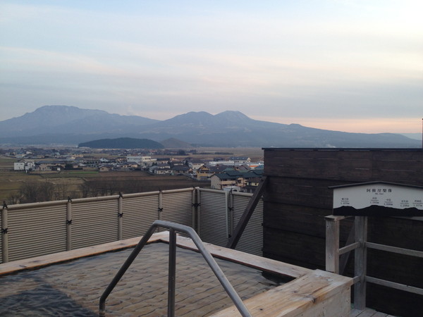 雄大な阿蘇五岳の絶景を一望。完全にパワースポットですね。そしてもっとオススメが朝、この温泉に入ることです。