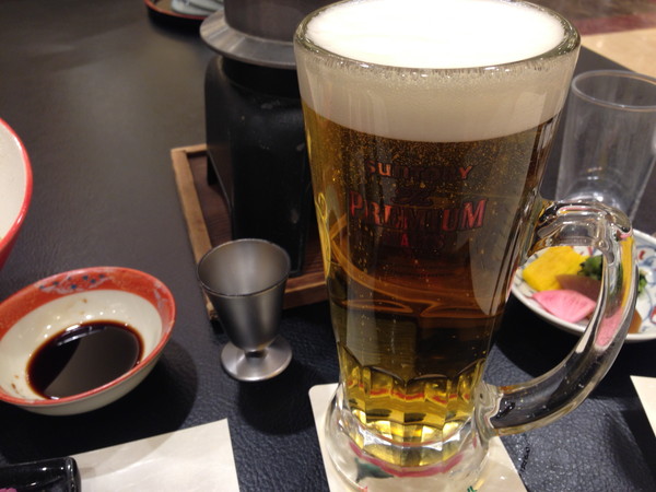 まずはビールを。温泉上がりのビールはうますぎる。