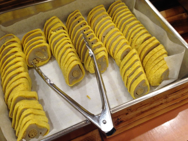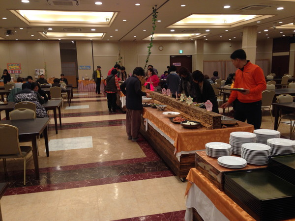 中央に料理が並べられたバイキング形式でいただきます。